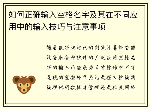如何正确输入空格名字及其在不同应用中的输入技巧与注意事项